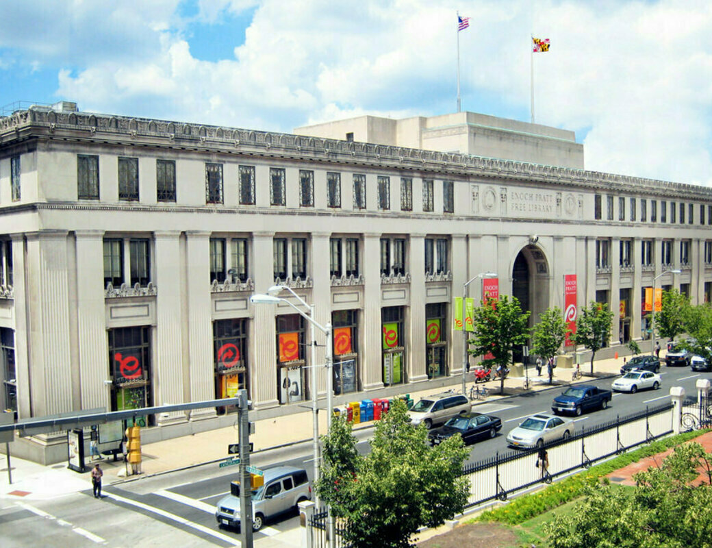 At the top of a hill on Cathedral street downtown, we find the central branch of the Enoch Pratt Free Library, Baltimore’s public library system. Always open to the public, even without a library pass, it is like a great and beautiful sanctuary. Some of my best thinking has taken place in the humanities wing reading room. It is, after all, one of the few places in the city devoted exclusively, and uninhibitedly, to thinking.