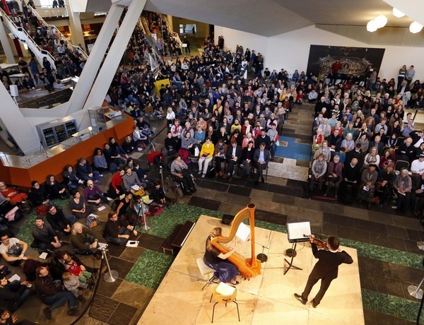 Tuesday's lunch hour tip is the amazing Berlin Philarmonic. A short-duration concert (around an hour) happens every Tuesday at 13h, for free. People make the Philarmonie's foyer full, sitting on the stairs, on the ground and everywhere around. Little advice: bring with you a little cushion for more comfort and try to arrive early to find the good spots.