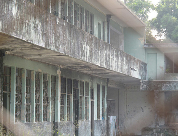 One of the many reasons for venturing to Yuen Long a quiet suburb, was to track down this building. It used to be a secondary school, attended by my dad, but since the school closed in the 80s, it became abandoned, and is now used as a film location for horror flicks (theres a film school across the road). He'd not seen this building since he teenage education, so the fact that I went there meant a lot to him. Most buildings of this ilk in Hong Kong have been knocked down and turned into modern flats, so when my Dad saw this photo, he was glad that it's still in tact, despite it's condition.