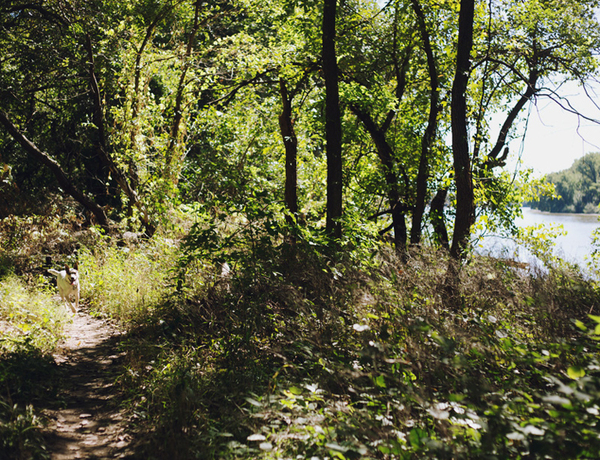 I think many people have a biased opinion that Kansas is all flat and yellow. Eastern Kansas is actually really lush and green. Riverfront Park sits alongside the Kansas River and the trails cut right through the trees. It's a good spot to be in nature and find critters and animal parts, all important to my work. Plus my dog loves to run around and get in the water.