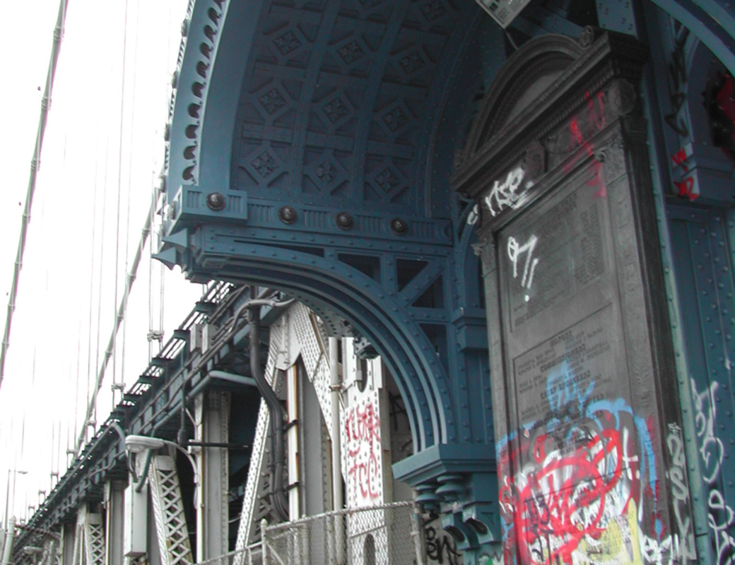 Always in the shadow of the Brooklyn Bridge, is the most direct route for a bike ride into the city from my place. This is a kind of alcove and lookout point that also reminds me I’m about to reach the top of the climb. I guess I kind of like the series of light bulbs and ornate rivets and metal work, the kinds things you really don’t see from a distance.